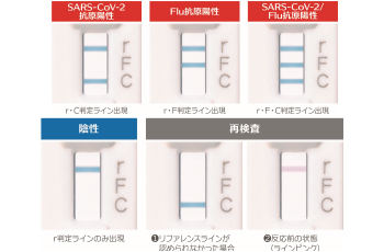 - 新型コロナウイルス抗原とインフルエンザウイルス抗原を同時に検出。
