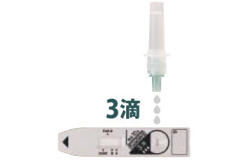 テストデバイスの試料滴下部に試料を3滴滴下します。