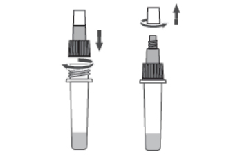 抽出液チューブのシールをはがし、検体を採取したスワブの頭部を抽出液に浸漬します。