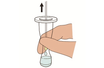 チューブをつまんでしごくように綿棒を引き抜き、液を絞り出します。